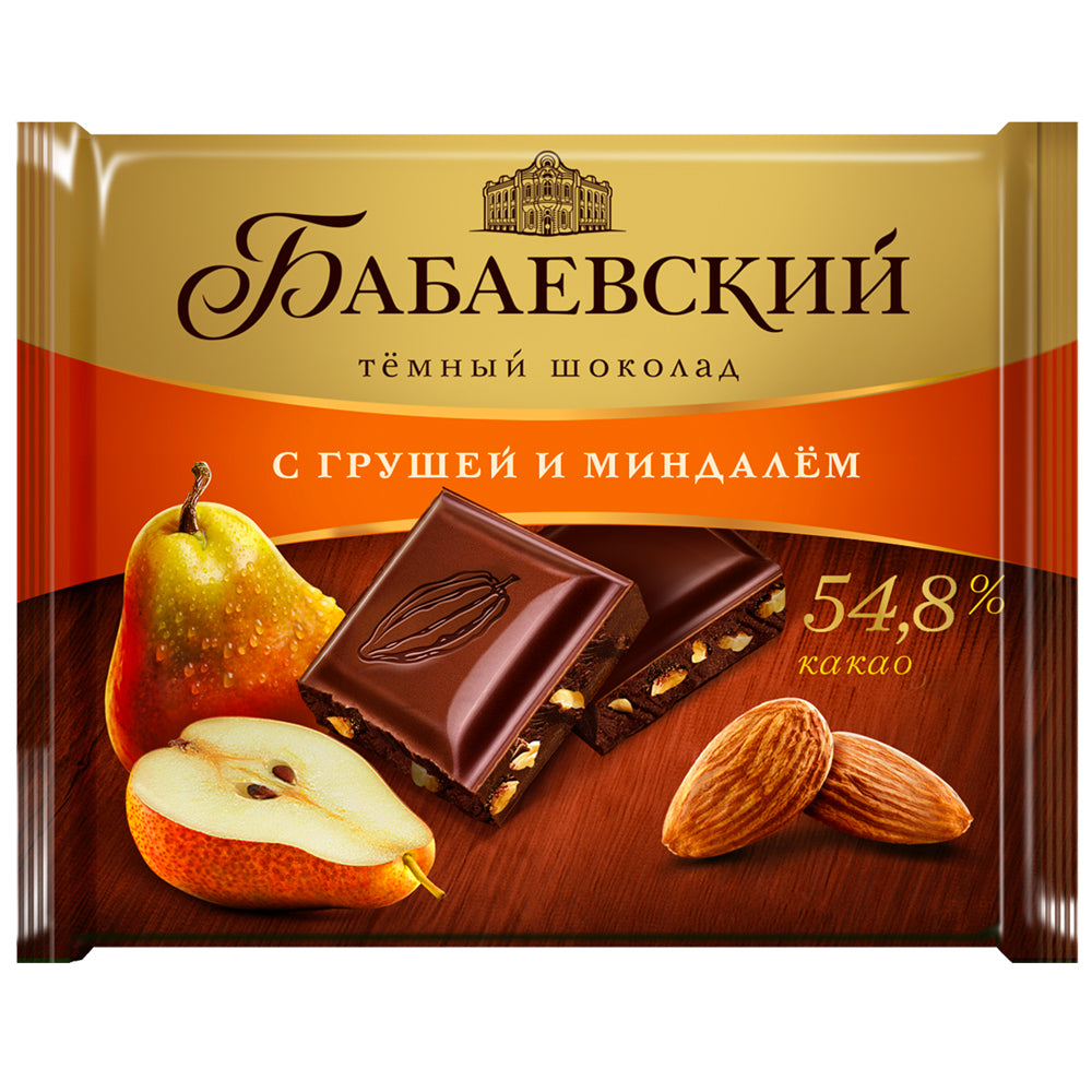 Dark Chocolate with Pear and Almonds 54.8% Cocoa, Babaevsky, 70g / 2.47oz