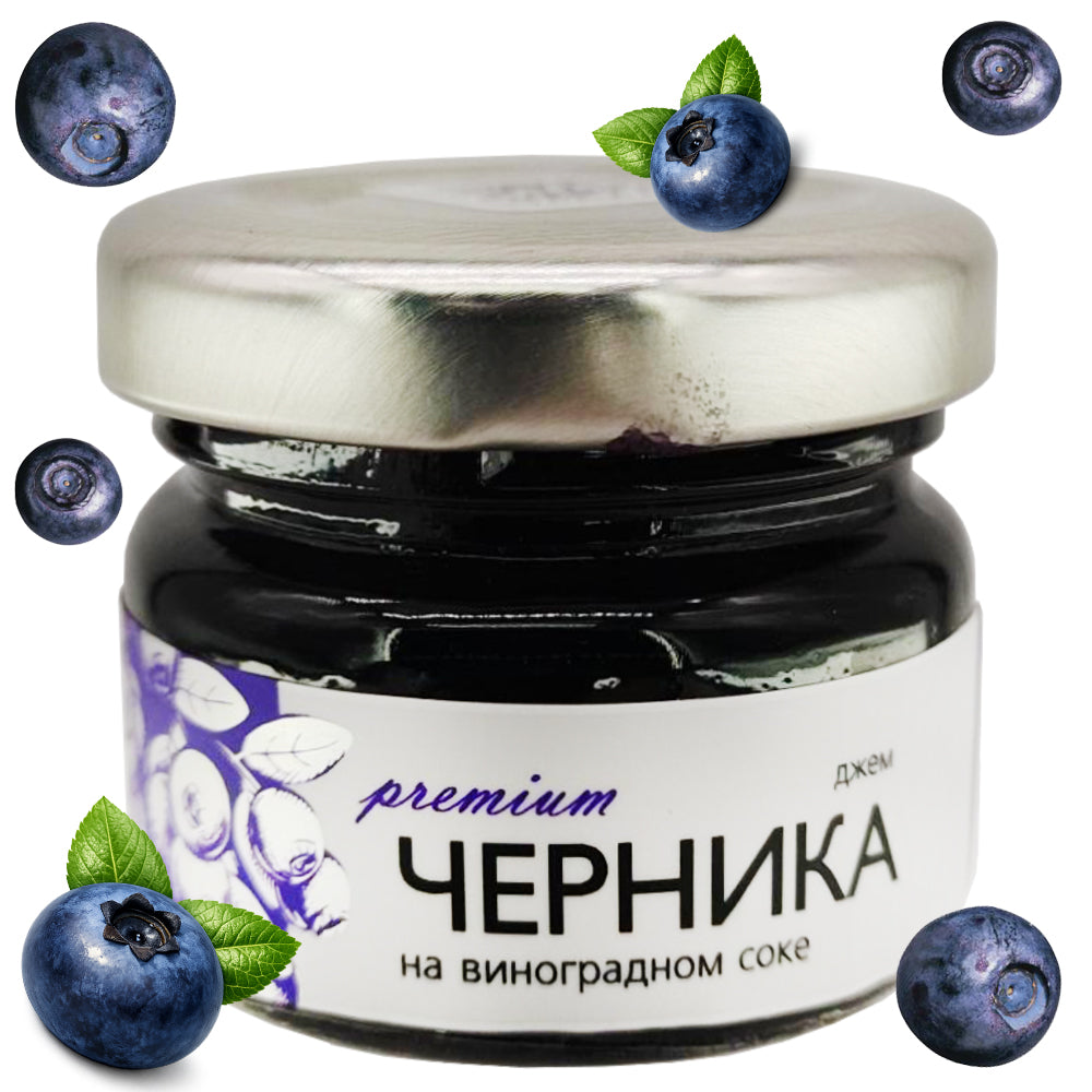 Premium Blueberry Jam in Grape Juice, Russian Forest, 25g / 0.89 oz