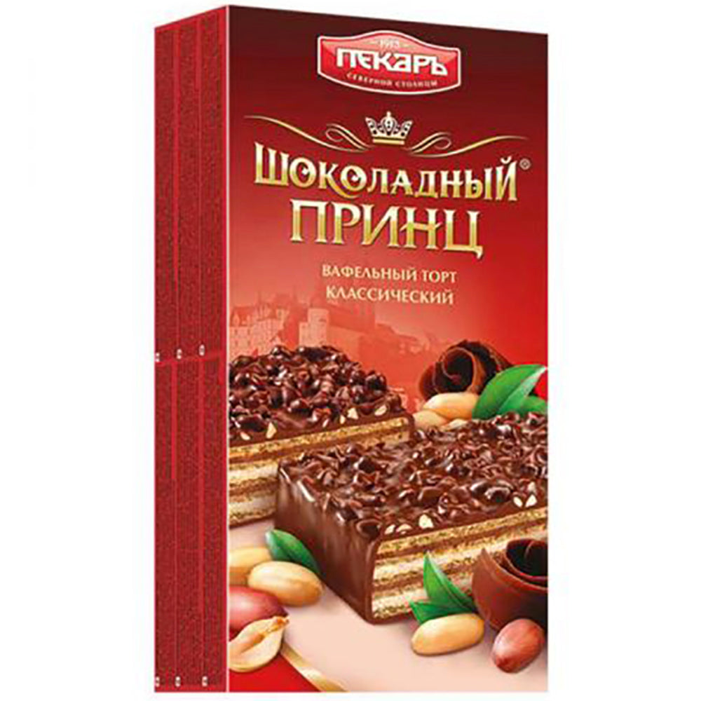 Chocolate-waffle cake "Prince" is a combination of crispy waffles, layered with milk fondant with nuts, and glazed with the dark chocolate.