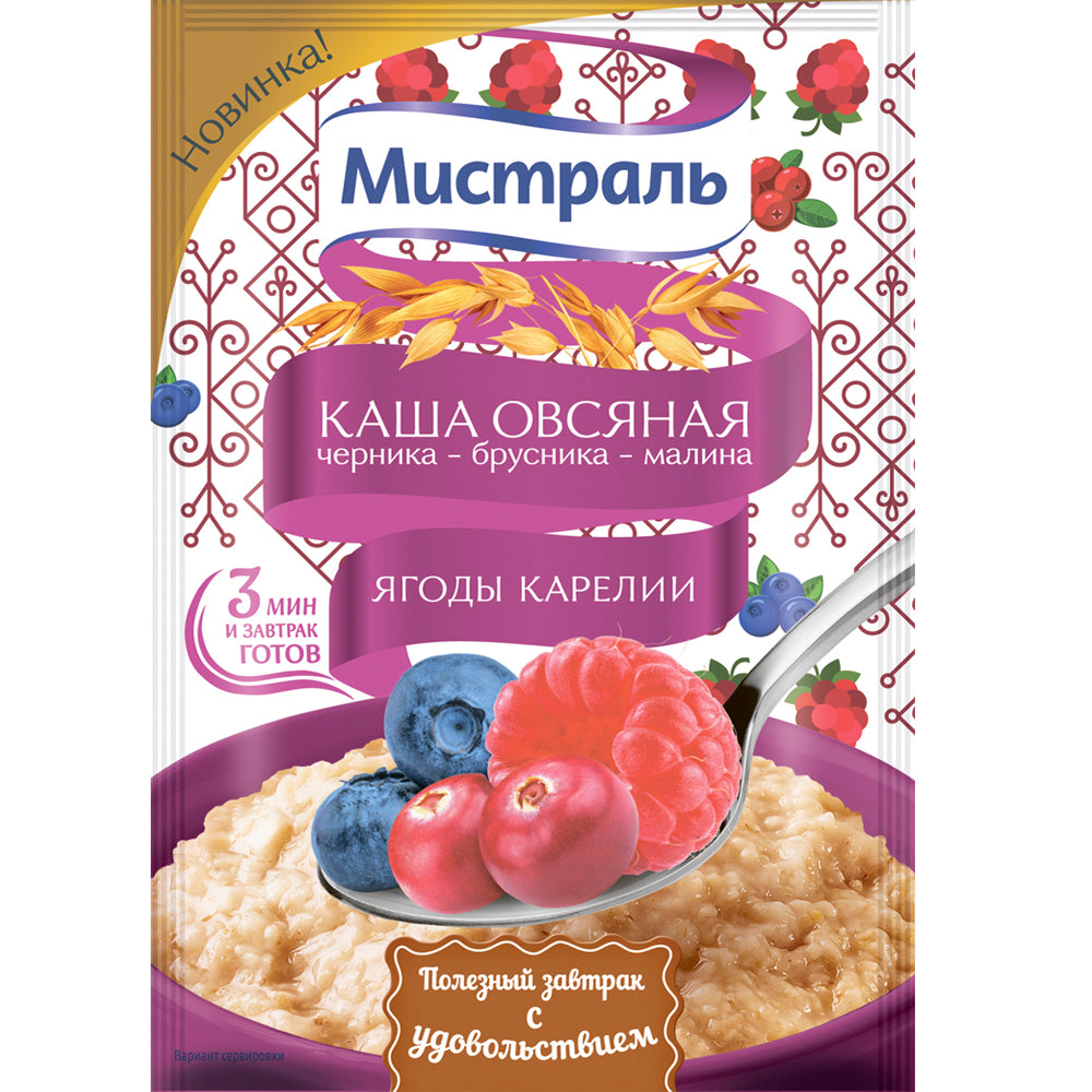 Oatmeal with Blueberry, Lingonberry & Raspberry “Berries of Karelia” 3 Minutes, Mistral, 40g / 1.41 oz