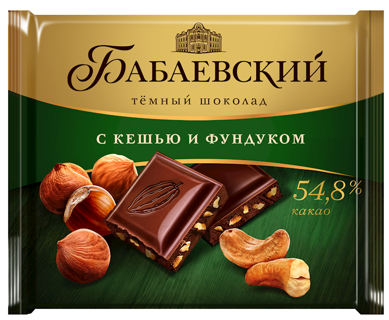 Savor the decadence of our Chocolate Babaevskiy, a 70g delight meticulously created by Babayev Confectionery Concern. This exquisite chocolate bar combines the velvety smoothness of rich cocoa with the crunch of premium cashews and the subtle nutty undertones of hazelnuts. It's a symphony of flavors that will transport your taste buds to a realm of pure bliss.