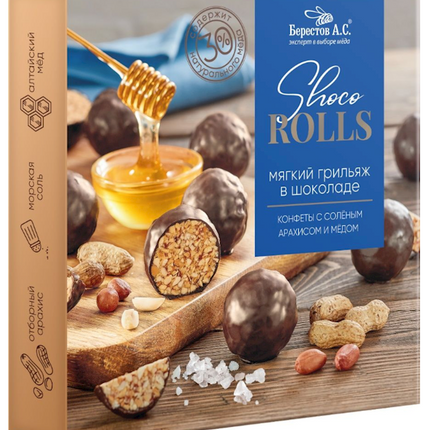 Конфеты в коробке Берестов Shoco Rolls с соленым арахисом и медом 135 гр